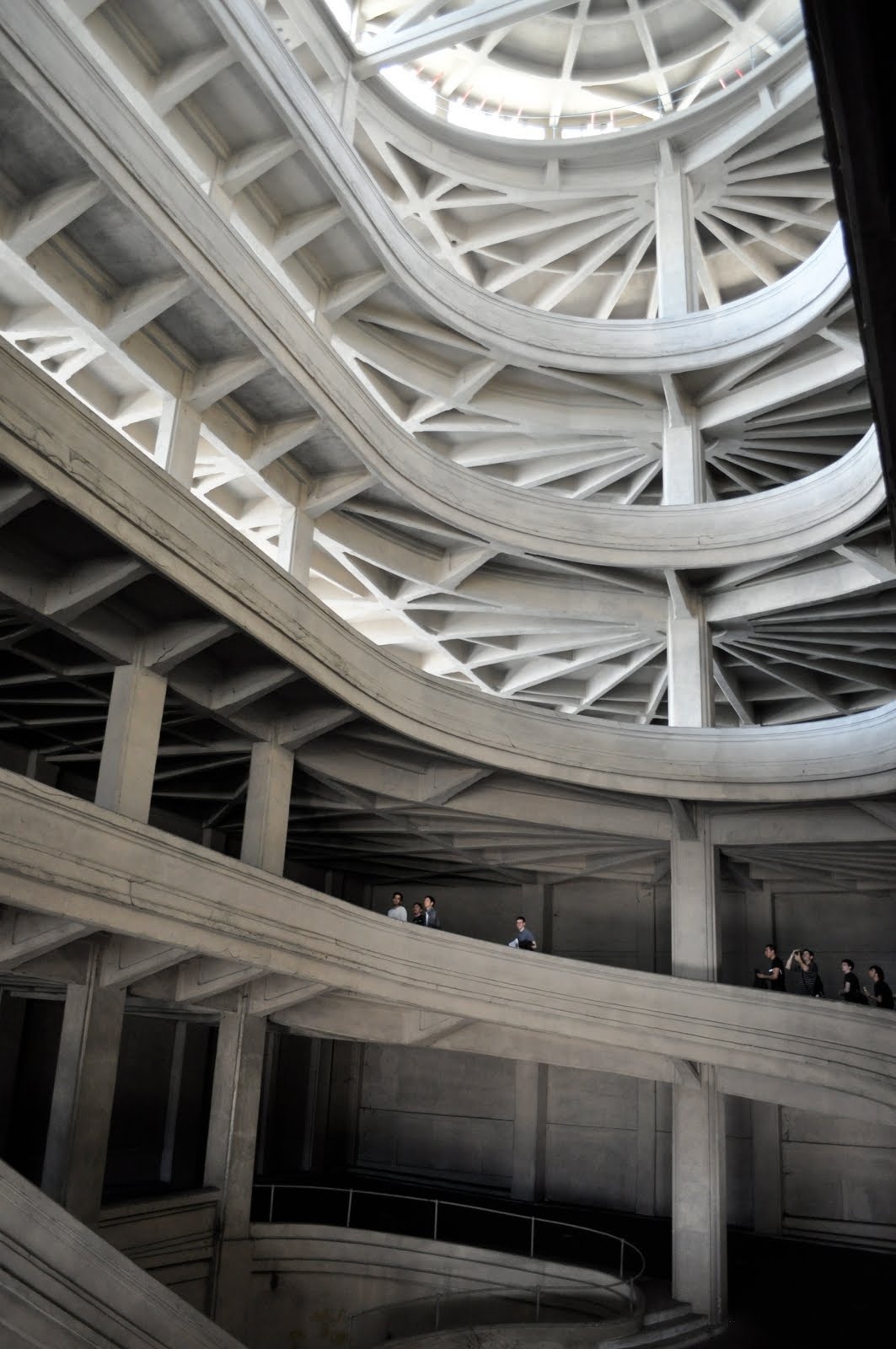Два грандиозных спиральных пандуса, словно гигантские раковины улиток, соединяли крышу с землей – по ним готовые автомобили спускались вниз, а инженеры и гонщики поднимались наверх. Покрытие? Монолитный бетон, выложенный с ювелирной точностью. Вся конструкция – несущий железобетонный каркас – была шедевром инженерной мысли своего времени, символом веры в прогресс.